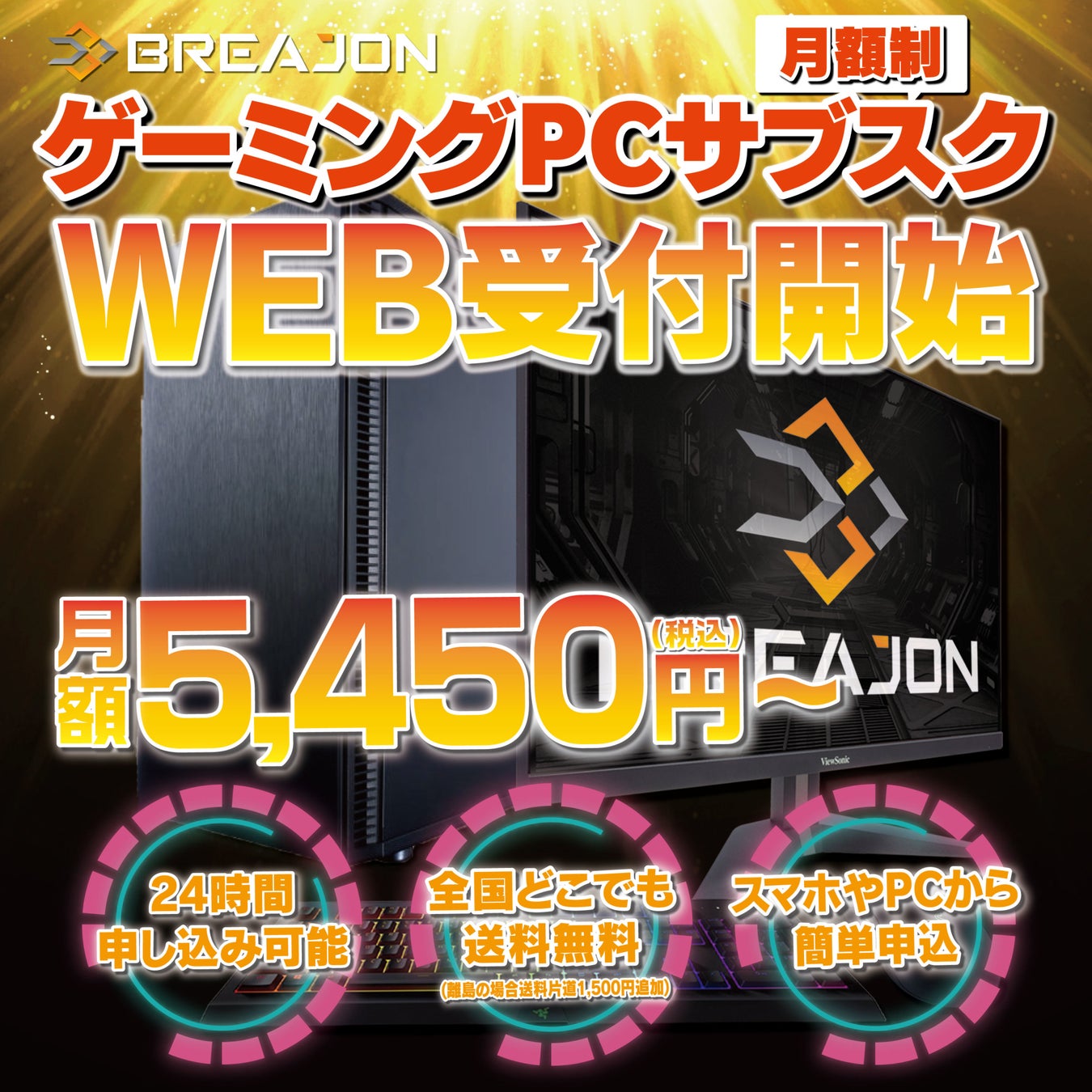 ・BREAJONゲーミングPCサブスクリプションサービスのオンライン受付開始